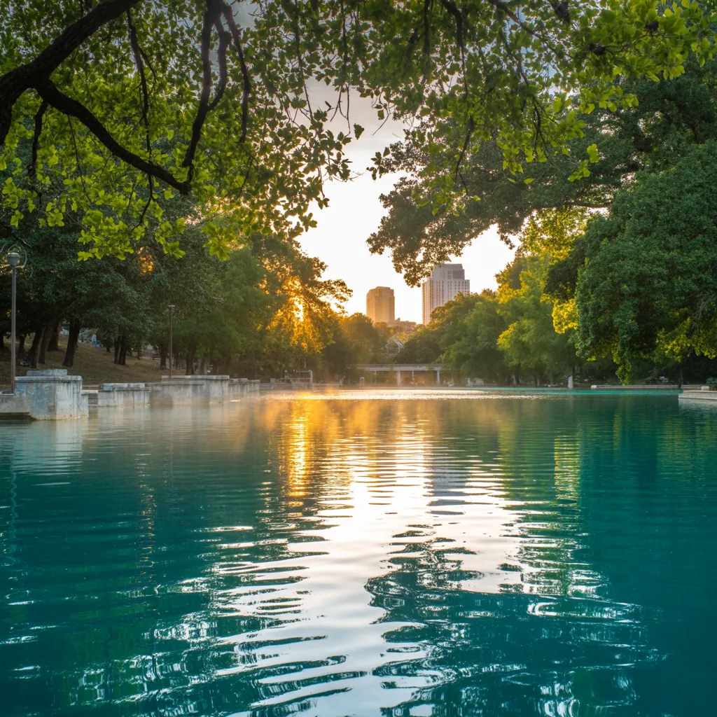 As the sun climbs to its highest point on warm summer afternoons, Barton Springs Pool emerges as a bustling sanctuary where locals and visitors alike seek respite from the heat. The subtle whisper of leaves and the joy of family gatherings cultivate a warm ambiance, drawing in those keen to cool off in the invigorating spring-fed waters. The pool maintains a constant temperature of approximately 68 degrees, making it a wonderful haven from the intense summer sun. Sun-seekers stretch out on the adjacent greenery, relishing outdoor meals and the energetic surroundings. Those wishing to mingle find the afternoon environment perfectly suited for building a sense of togetherness. When dusk approaches, the golden hour illuminates the surroundings with a soft brilliance, deepening the magical appeal of this treasured Austin retreat.